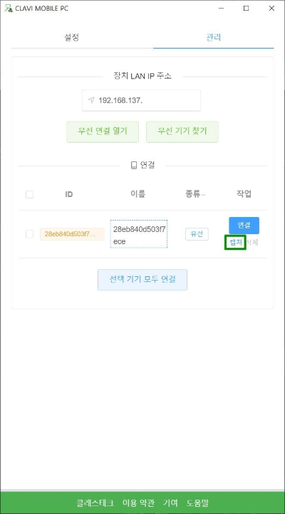 그리고 또 한가지, 클래비 모바일에서는 무선 연결을 지원합니다.