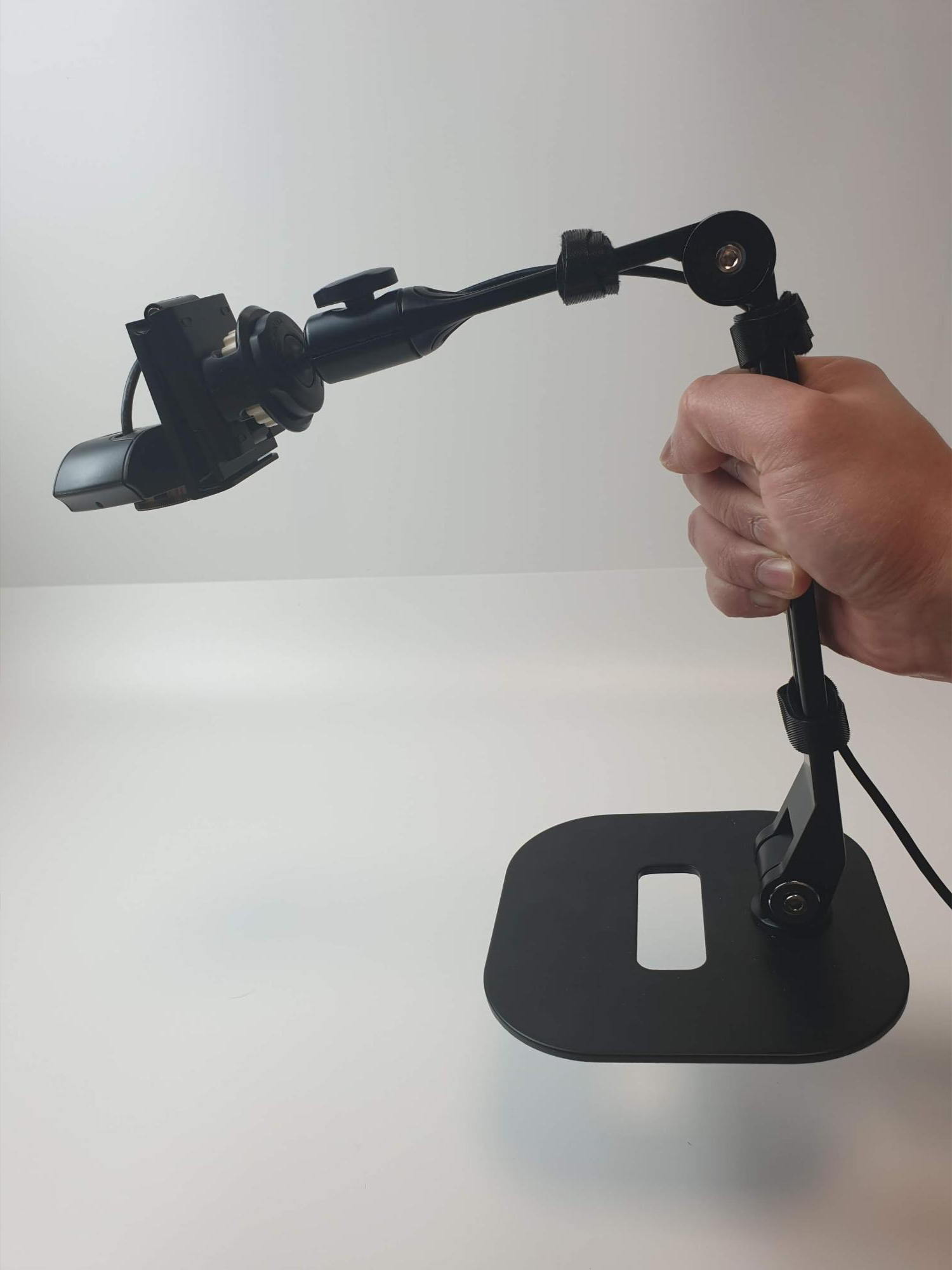 실물화상기 선택에 있어서 의외로 간과하지만, 막상 사용에 있어서 중요한 역할을 하는 것이 바로 거치대입니다. 거치대는 바닥판이 넓으면 쓰러질 염려가 없지만 넓은 공간을 차지하고, 바닥판이 좁으면 공간 활용과 휴대성 측면에서 좋지만 작은 충격에 쓰러지기 쉽기에 파손 및 안전의 우려가 있습니다. 클래비 실물화상기는 이러한 문제들을 보완하기 위해 바닥이 납작하고 무거우면서도 휴대성이 나쁘지 않은 거치대를 사용하였습니다.