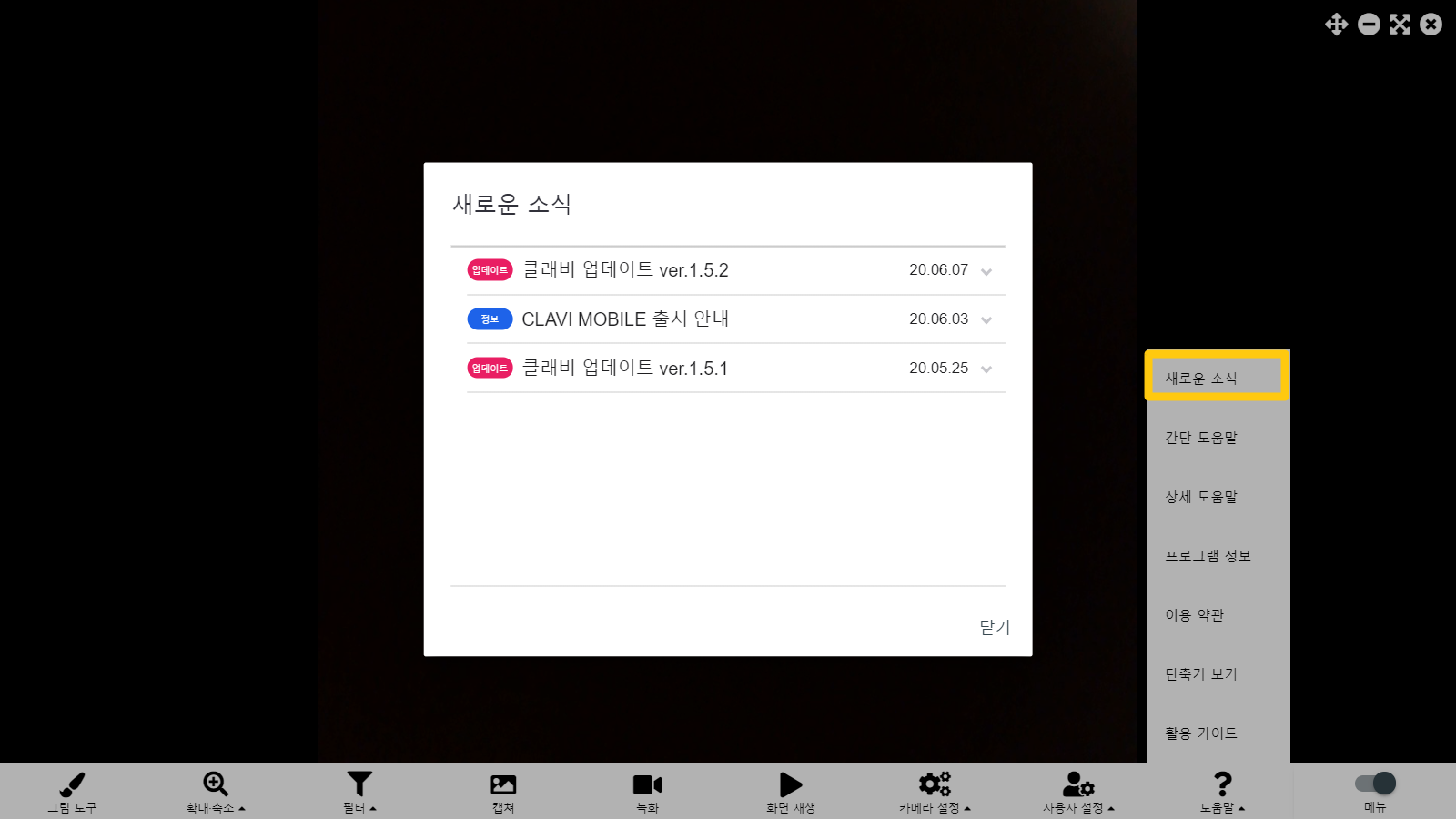 클래비 프로그램 업데이트나 새로운 정보를 알 수 있도록 '새로운 소식' 메뉴를 추가하였습니다.