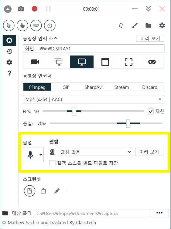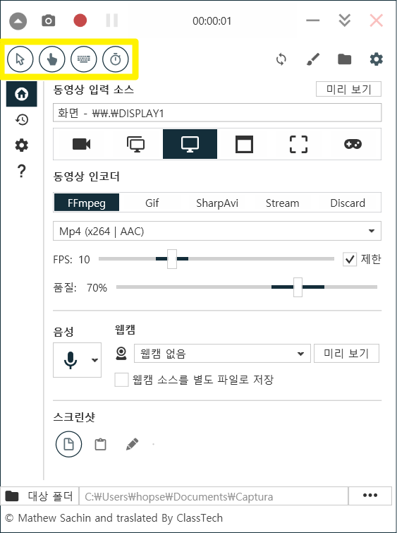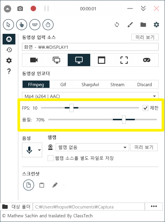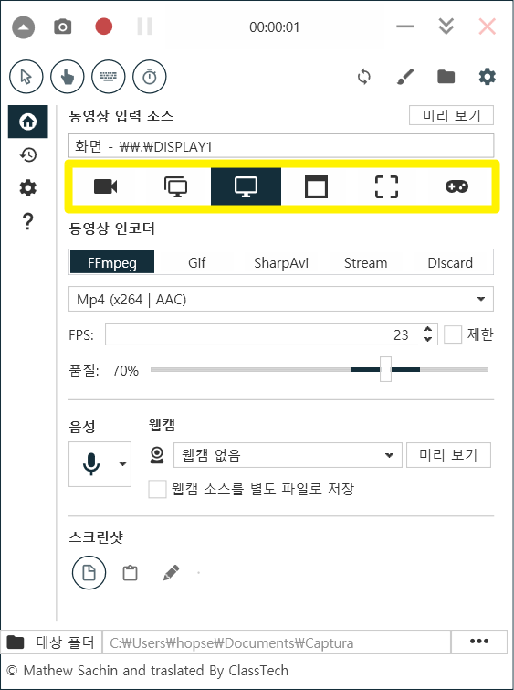 무료 컴퓨터 화면 녹화 프로그램 Captura 사용 예시