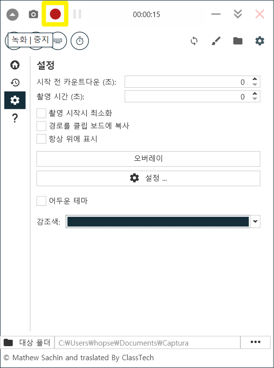 Captura(https://github.com/MathewSachin/Captura)가 MIT 오픈소스 프로그램이기에 저희가 수정 제작할 수 있었습니다.
