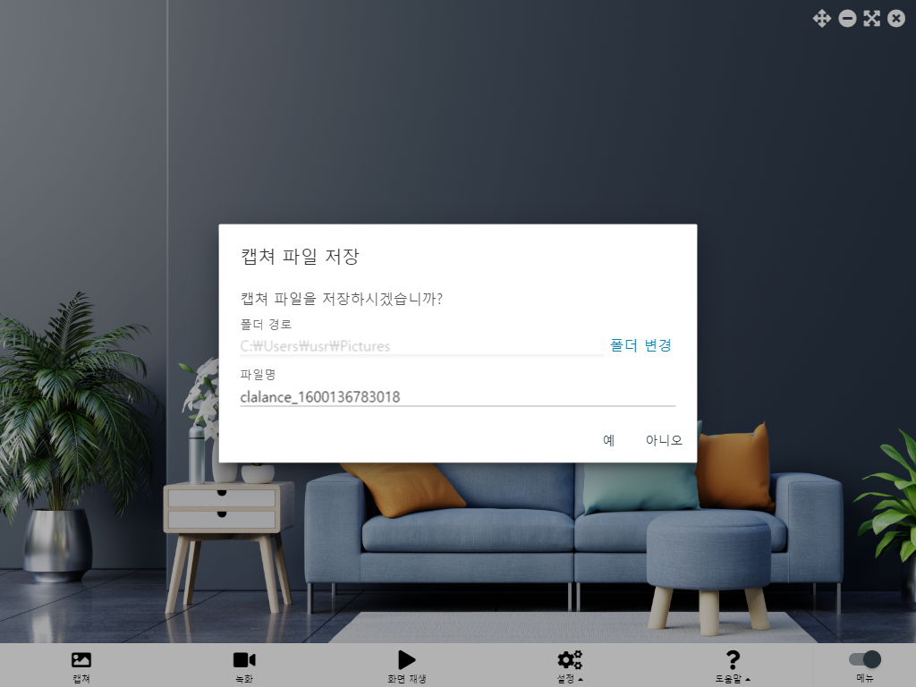 캡쳐는 현재 화면을 정지된 이미지로 저장하는 기능입니다.