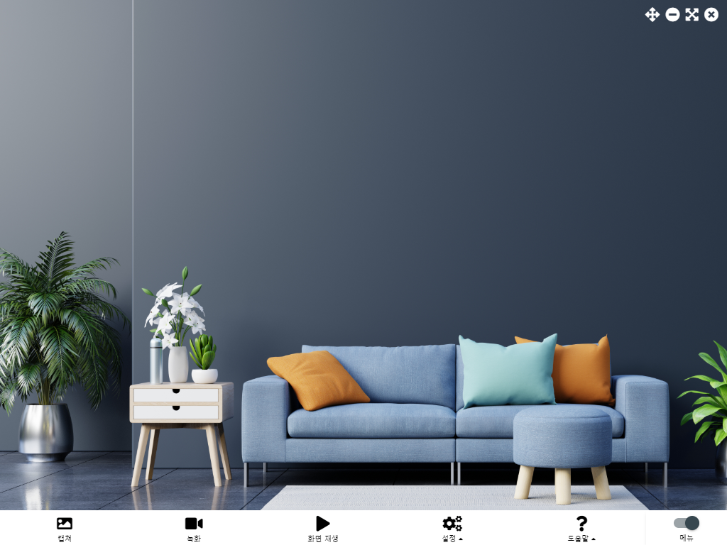 프로그램 하단의 메뉴를 보시면 캡쳐, 녹화, 화면 재생, 설정 등이 있습니다.