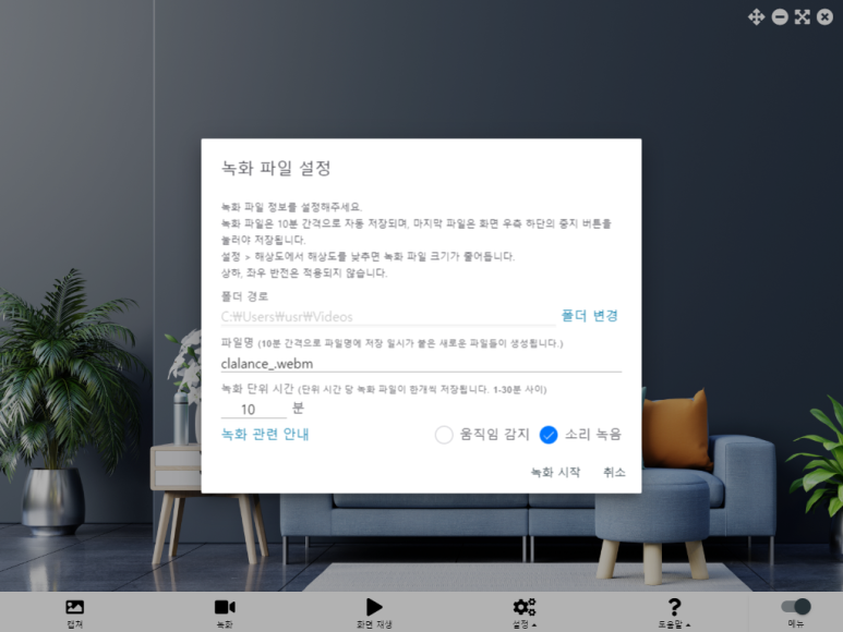 다만 클래비 프로그램에 없는 CCTV로 활용 가능한 움직임 감지 단위 녹화 기능이 있습니다.